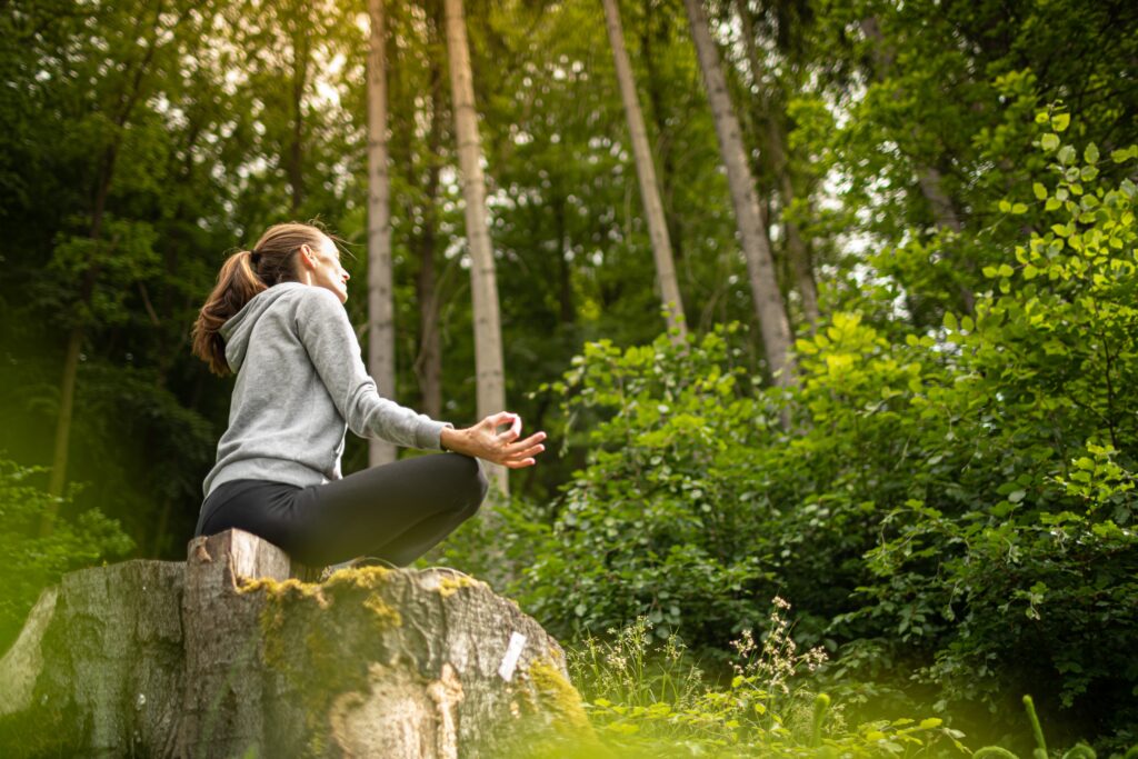 Meditationen, Yoga… viele Zugänge können teil des Waldbadens sein. © Shutterstock